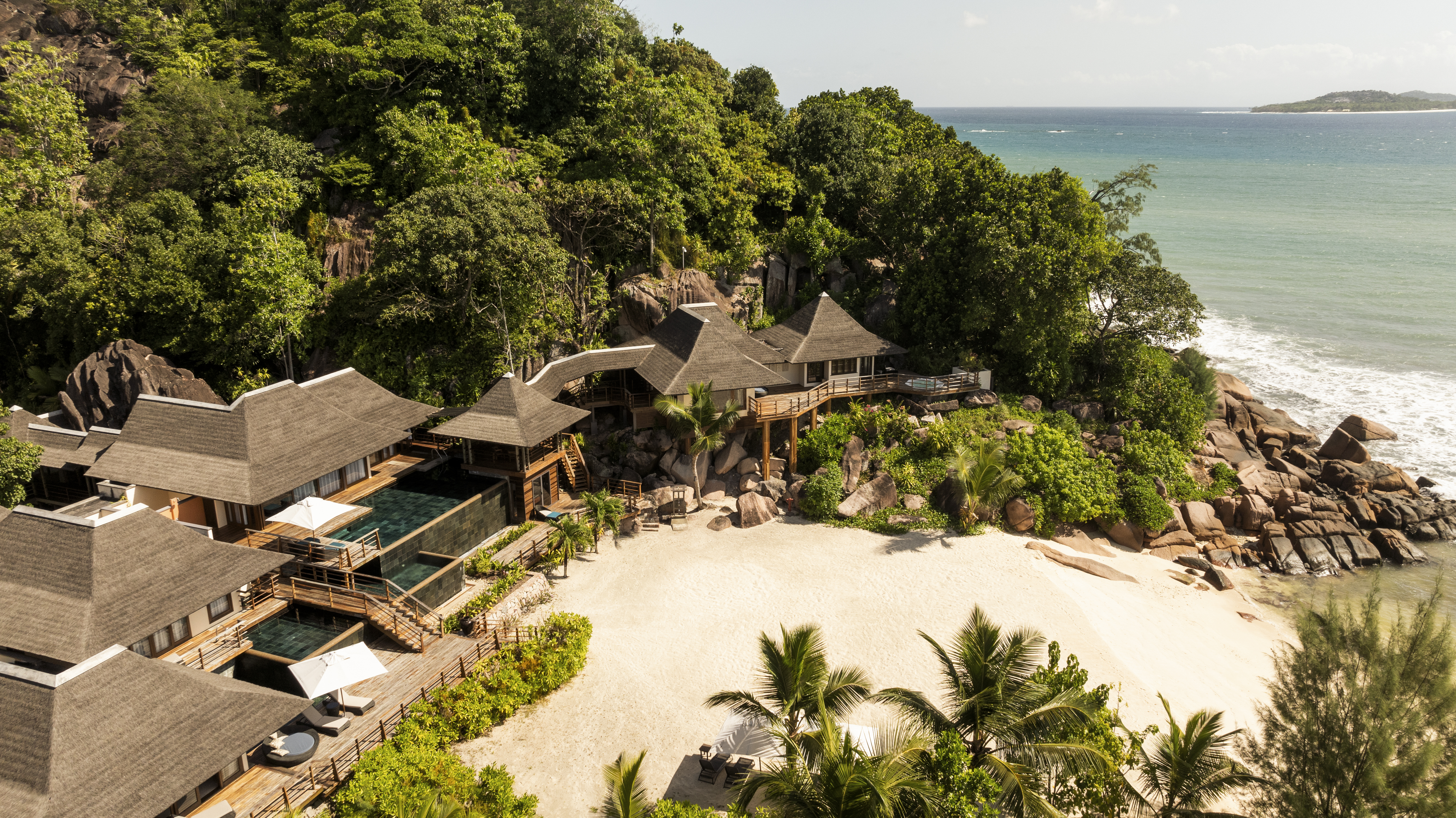 Nestled on the northeastern shores of Praslin, Seychelles, Constance Lemuria is set amidst some of the Indian Ocean’s most breathtaking landscapes. The hotel lies between crystal-clear lagoons and powdery white beaches, framed by the Seychelles’ signature granite boulders and lush tropical vegetation.