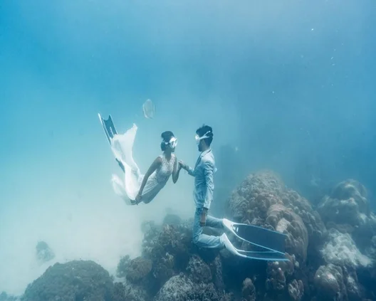 Included in our package are speed boat transfers to and from the ceremony site, ensuring a smooth and stress-free journey for you and your beloved. A certified Dive Master will be on hand to assist with all preparations, ensuring your special day goes off without a hitch.